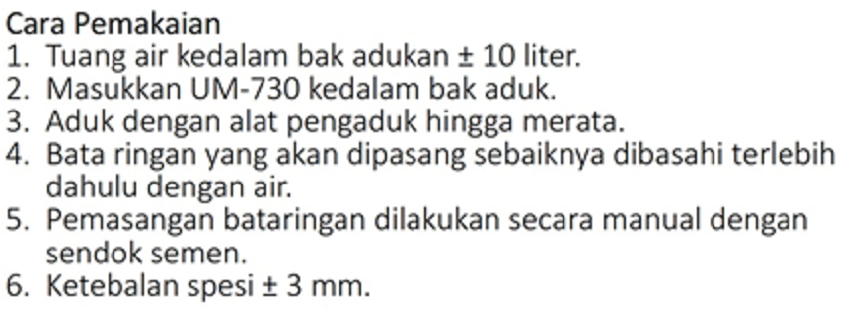 UM-730 digunakan untuk pemasangan bata ringan aerasi AAC
